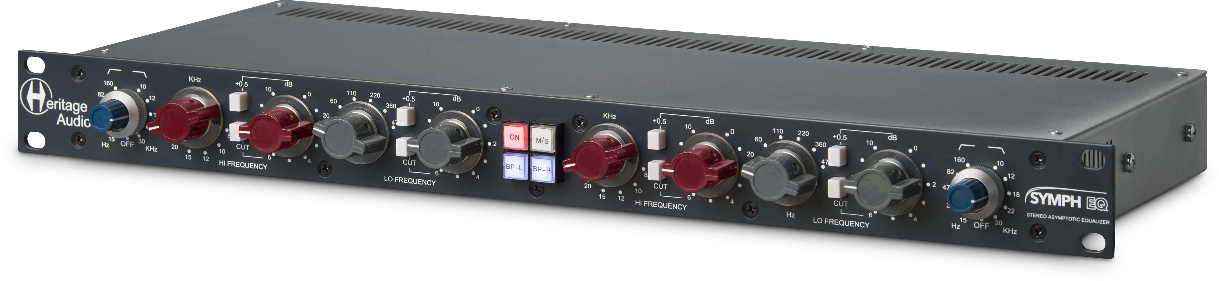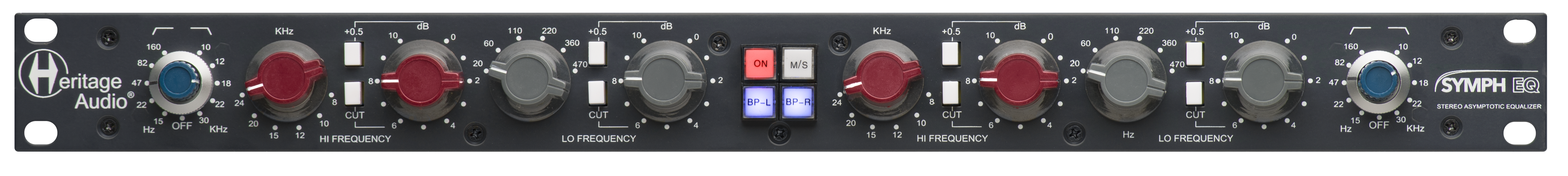 Das intelligente Schaltungslayout ermöglicht eine maximale Anhebung/Absenkung von 10,5 dB in 0,5-dB-Schritten. Der Hauptdrehschalter stellt 1dB-Schritte ein, während die 0,5-Taste ein halbes dB zum Hauptmesswert hinzufügt. Die CUT-Taste wandelt die Anhebung in eine Absenkung um. Es stehen sechs strategisch gewählte Frequenzen pro Band zur Verfügung (8, 10, 12, 15, 20 und 24 Khz als High-Shelf, und 470, 360, 220, 110, 60 und 20 Hz als Low-Shelf).